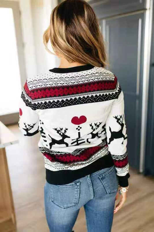 Christmas Sweater Cute Elk Geometric Print Knitted Sweater Woemen Winter Tops Clothes